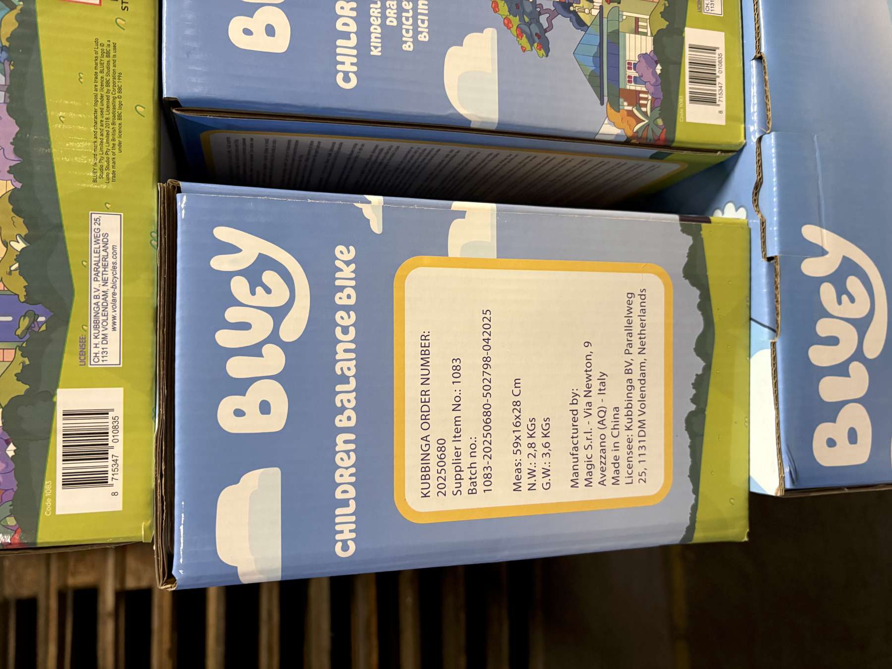 Terug Naar De ShopSpeciaal voor de allerkleinste avonturiers is er deze schattige Bluey loopfiets in een frisse lichtblauwe kleur. De fiets is prachtig versierd met vrolijke afbeeldingen van Bluey, het bekende hondje uit de populaire kinderserie.