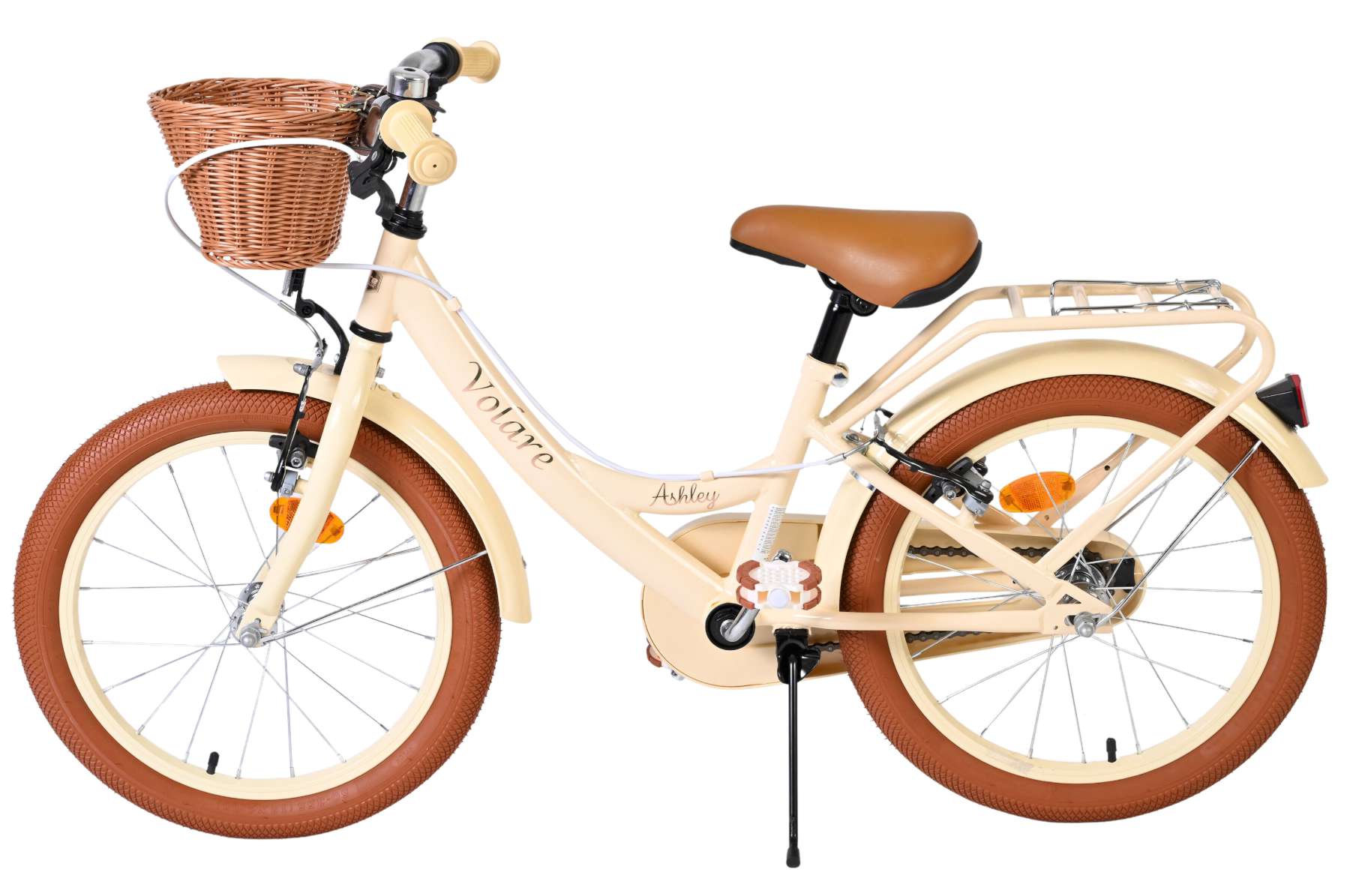 Met zijn frisse creme kleur en complete uitrusting is de Volare Ashley 18 inch kinderfiets een fijne en betrouwbare keuze voor dagelijks fietsplezier.