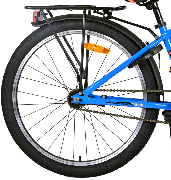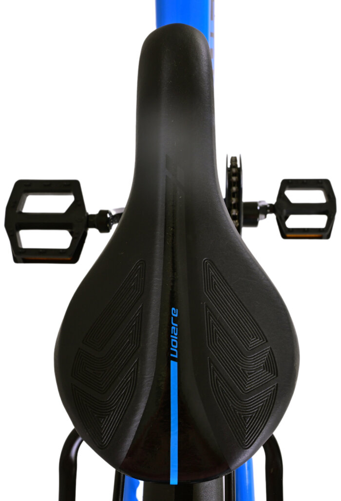 Veiligheid staat voorop! Daarom heeft deze gave fiets een handrem en terugtraprem, reflectoren in de wielen en verlichting op batterij voor en achter. Ook aan het comfort is gedacht. De mooie donkerblauwe Volare fiets heeft een handige achterdrager om moeiteloos al je spullen mee te nemen, een comfortabel zacht zadel, een standaard zodat je fiets altijd netjes blijft staan en een stevig slot. Om zo lang mogelijk van de fiets te kunnen genieten heeft deze een extra lange zadelpen waardoor de fiets nóg langer met het kind meegroeit. Let op, het stuur is niet in hoogte verstelbaar!