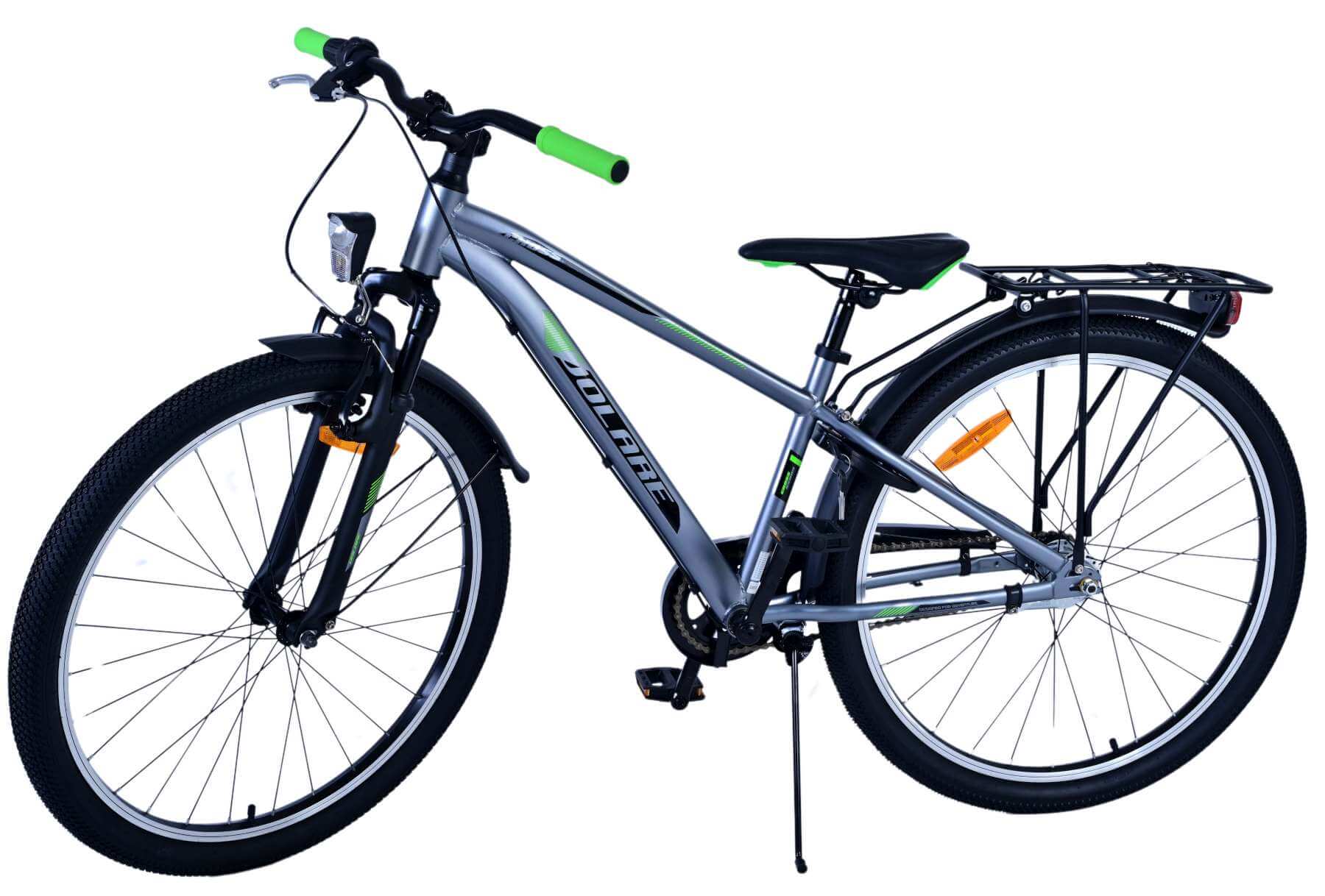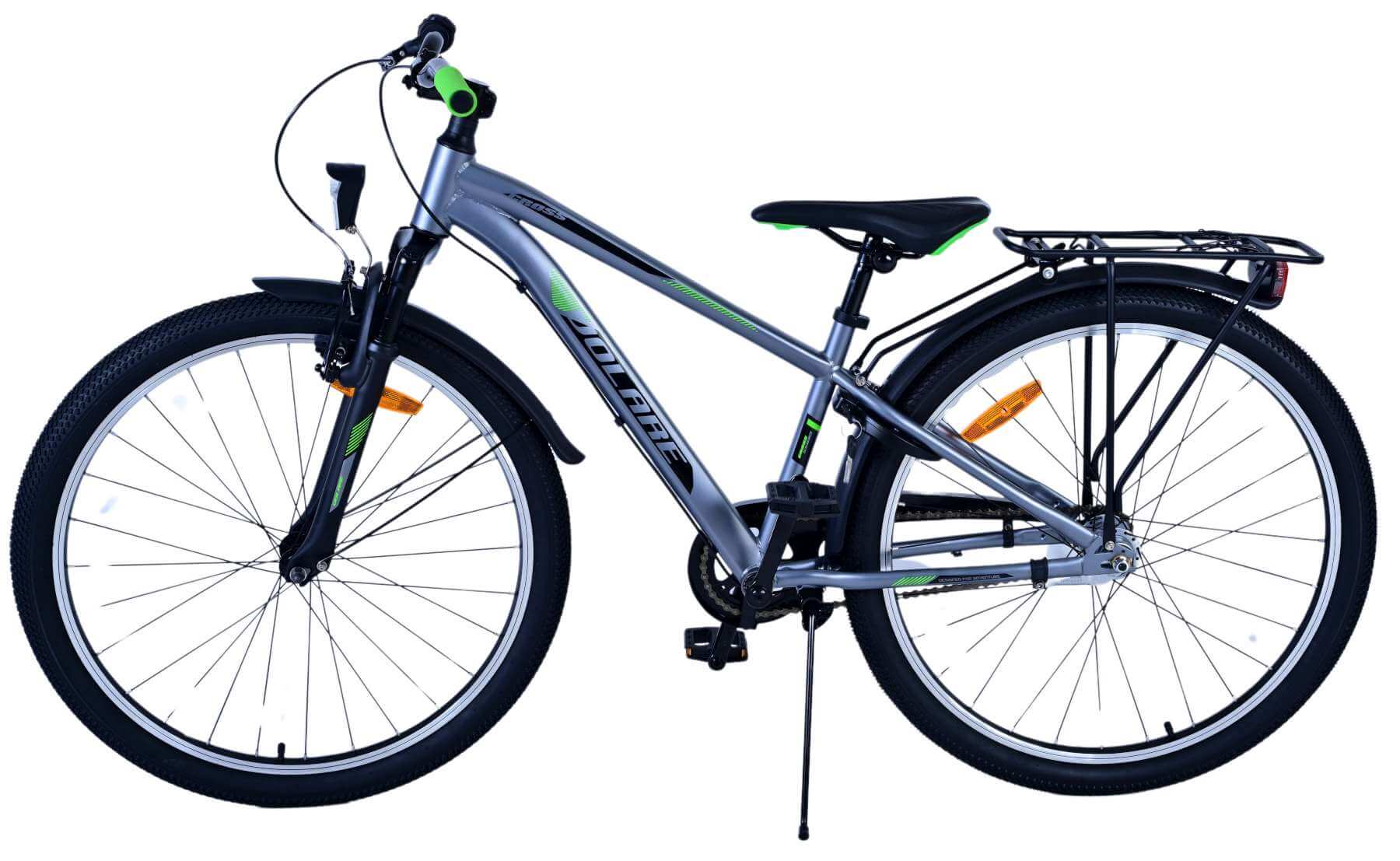 Veiligheid staat voorop! Daarom heeft deze gave fiets een handrem en terugtraprem, reflectoren in de wielen en verlichting op batterij voor en achter. Ook aan het comfort is gedacht. De mooie donkergrijze Volare fiets heeft een handige achterdrager om moeiteloos al je spullen mee te nemen, een comfortabel zacht zadel, 3 versnellingen van shimano, een standaard zodat je fiets altijd netjes blijft staan en een stevig slot. Om zo lang mogelijk van de fiets te kunnen genieten heeft deze een extra lange zadelpen waardoor de fiets nóg langer met het kind meegroeit. Let op, het stuur is niet in hoogte verstelbaar!