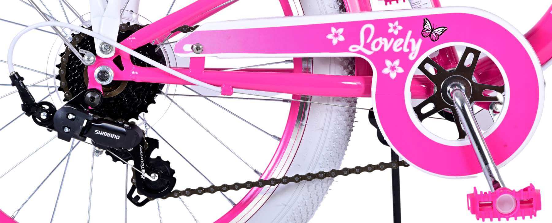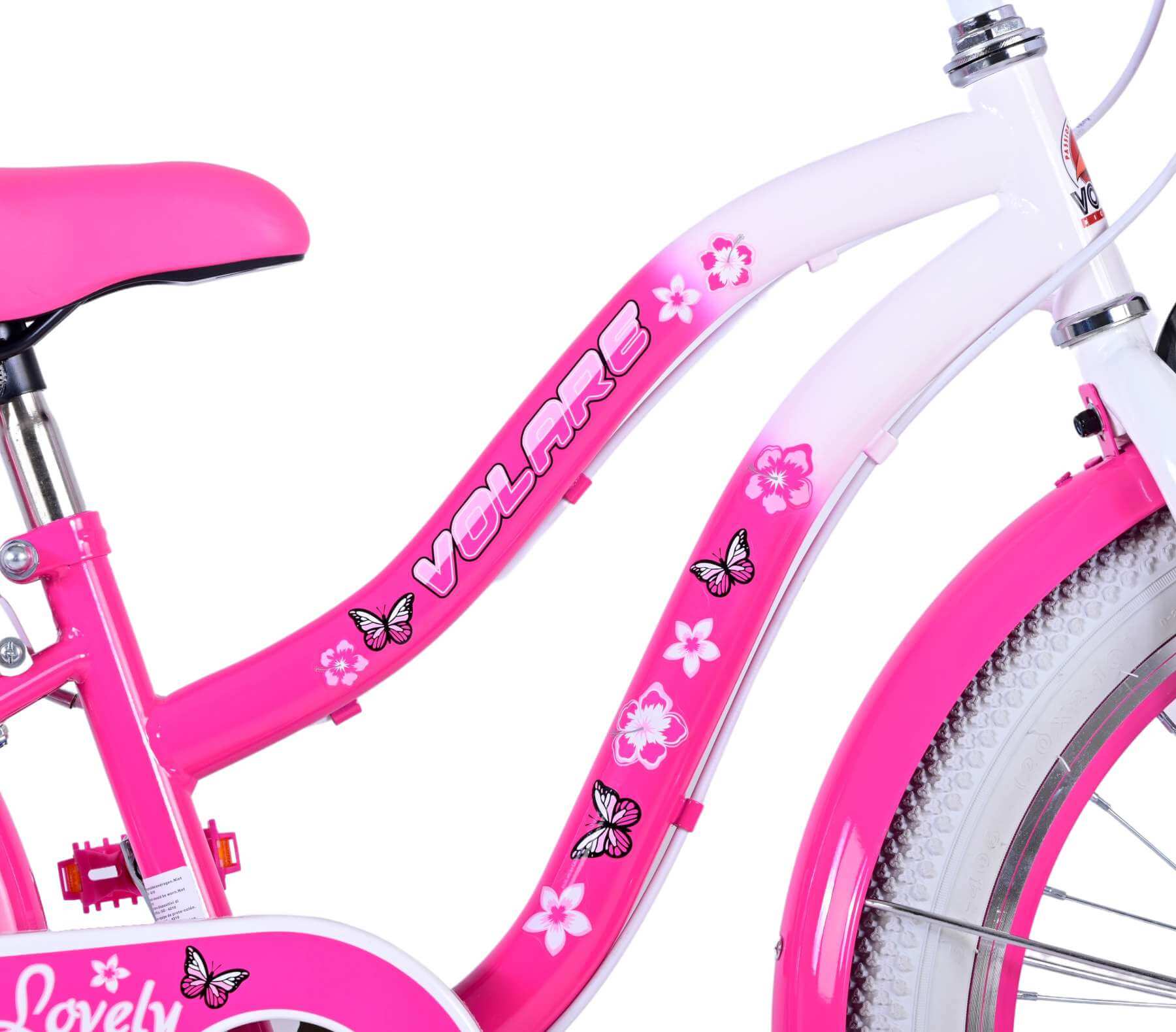 Veiligheid staat voorop! Daarom heeft de fiets reflectoren voor, achter en in de wielen en een leuke bel. Ook aan het comfort is gedacht. De mooie roze Volare Lovely fiets heeft een handige achterdrager, 7 versnellingen, en een standaard zodat je fiets altijd netjes blijft staan. Om zo lang mogelijk van de fiets te kunnen genieten zijn het zadel en stuur in hoogte verstelbaar.