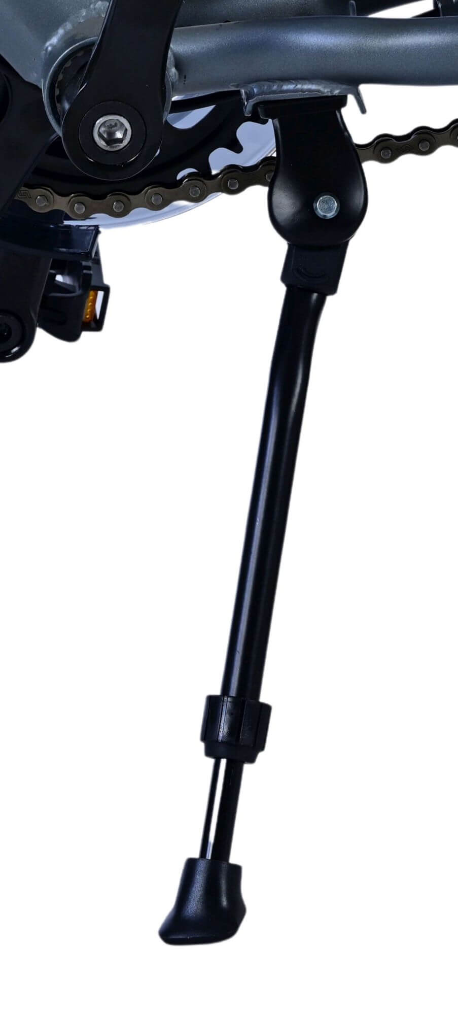 De praktische standaard zorgt ervoor dat de fiets altijd stabiel staat wanneer deze even geparkeerd is. Bovendien wordt de fiets geleverd met een los kabelslot, zodat je deze veilig kunt achterlaten wanneer je niet in de buurt bent.