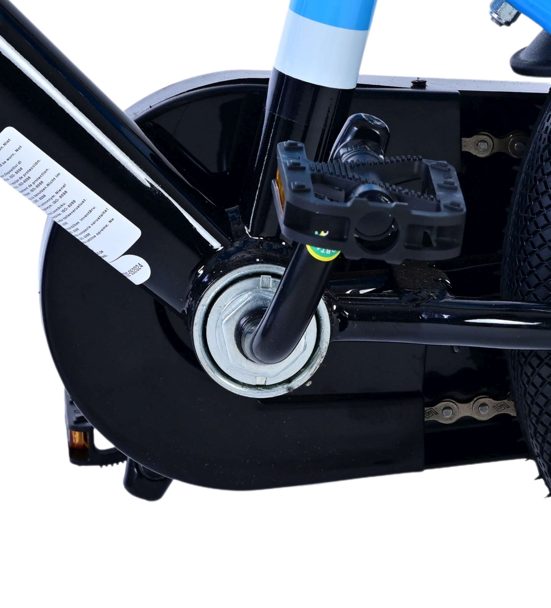 Veiligheid staat voorop! Daarom heeft deze gave fiets een gesloten kettingkast ter bescherming van de vingers. Deze fiets heeft GEEN terugtraprem, maar twee handremmen! en afneembare zijwieltjes. Ook aan het comfort is gedacht. De mooie blauwe Volare fiets heeft een bidonhouder met bidon. Om zo lang mogelijk van de fiets te kunnen genieten zijn het zadel en stuur in hoogte verstelbaar.