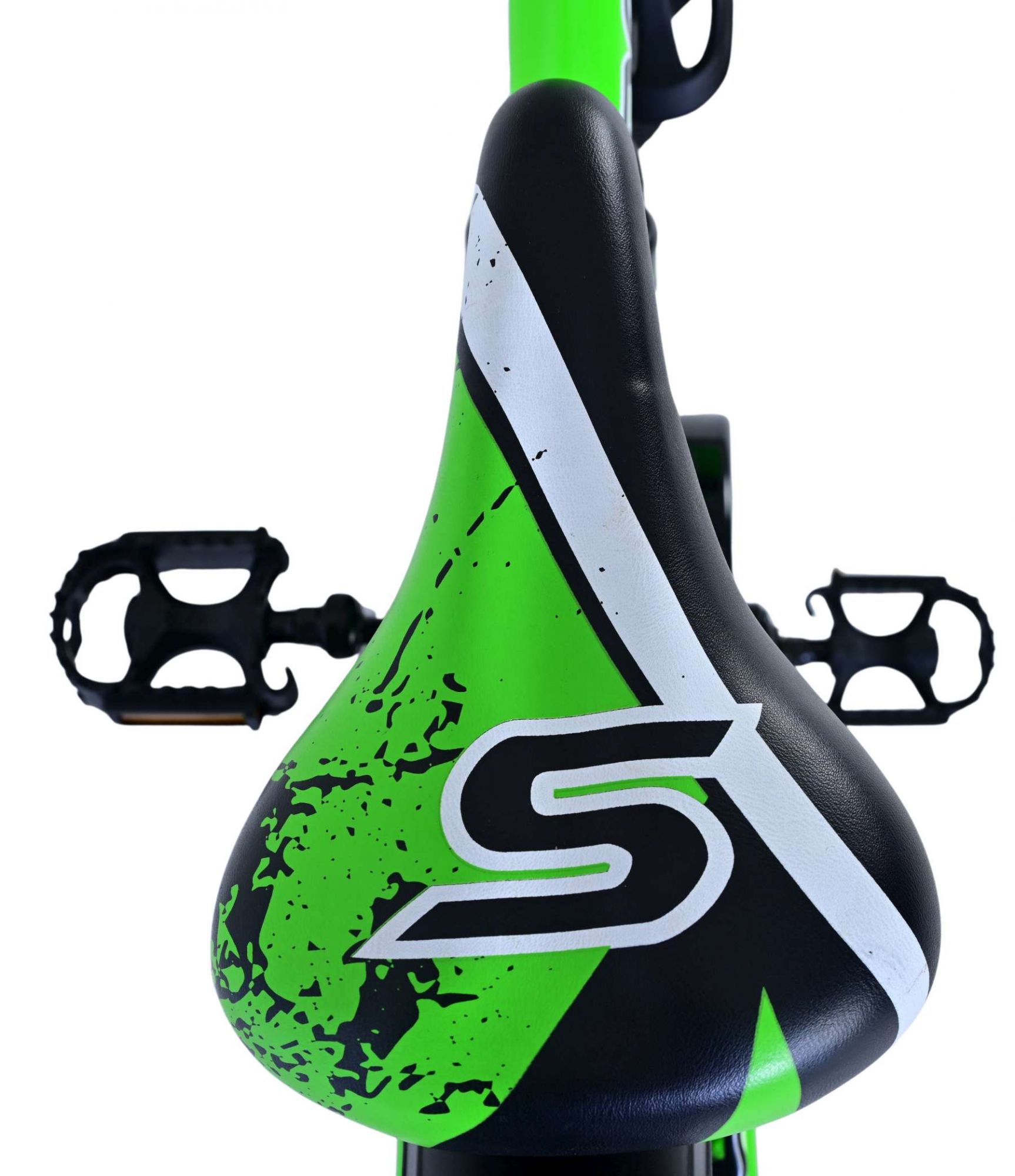 Veiligheid staat voorop! Daarom heeft deze gave fiets GEEN terugtraprem en 2 handremmen. Daarnaast heeft de fiets een leuke bel en reflectoren in de wielen. Ook aan het comfort is gedacht. De mooie zwarte Volare fiets met groene accenten heeft een standaard zodat hij netjes blijft staan. Om zo lang mogelijk van de fiets te kunnen genieten heeft deze een extra lange zadelpen waardoor de fiets nóg langer met het kind meegroeit en ook het stuur is in hoogte verstelbaar.
