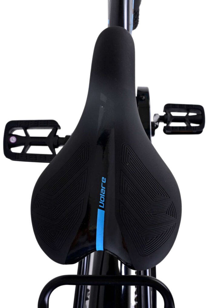 Veiligheid staat voorop! Daarom heeft deze gave fiets een handrem en terugtraprem en verlichting op batterij voor en achter. Daarnaast heeft de fiets een leuke bel en reflectoren in de wielen. Ook aan het comfort is gedacht. De mooie zwarte Volare fiets met blauwe accenten heeft een luxe zacht zadel en extra zachte handvaten, een handige achterdrager, en een stevig frame dat wel tegen een stootje kan. Verder heeft de fiets 3 versnellingen van Shimano, een standaard zodat hij netjes blijft staan en een sterk slot. Om zo lang mogelijk van de fiets te kunnen genieten heeft deze een extra lange zadelpen waardoor de fiets nóg langer met het kind meegroeit en ook het stuur is in hoogte verstelbaar.